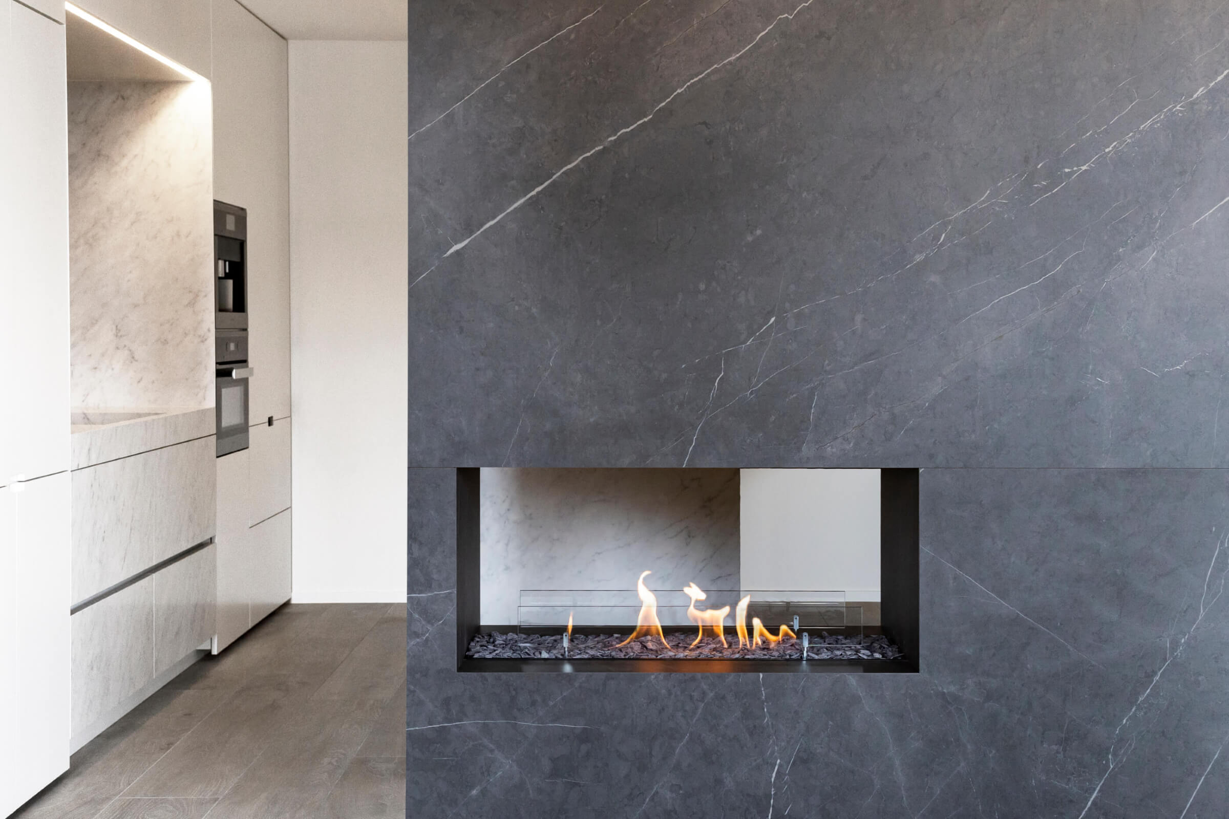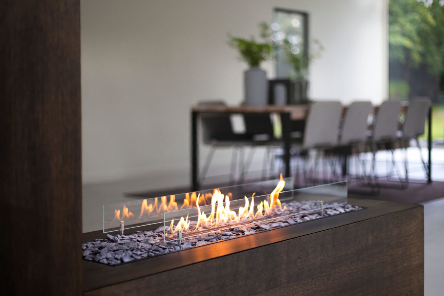 Transformeer uw ruimte met een open of doorkijk installatie, waarbij het BIO-O! systeem centraal staat. Deze installatiestijl verwijst naar het hebben van open zijkanten aan de voor- en achterkant, waardoor je vanuit verschillende hoeken van de betoverende vlammen kunt genieten.
