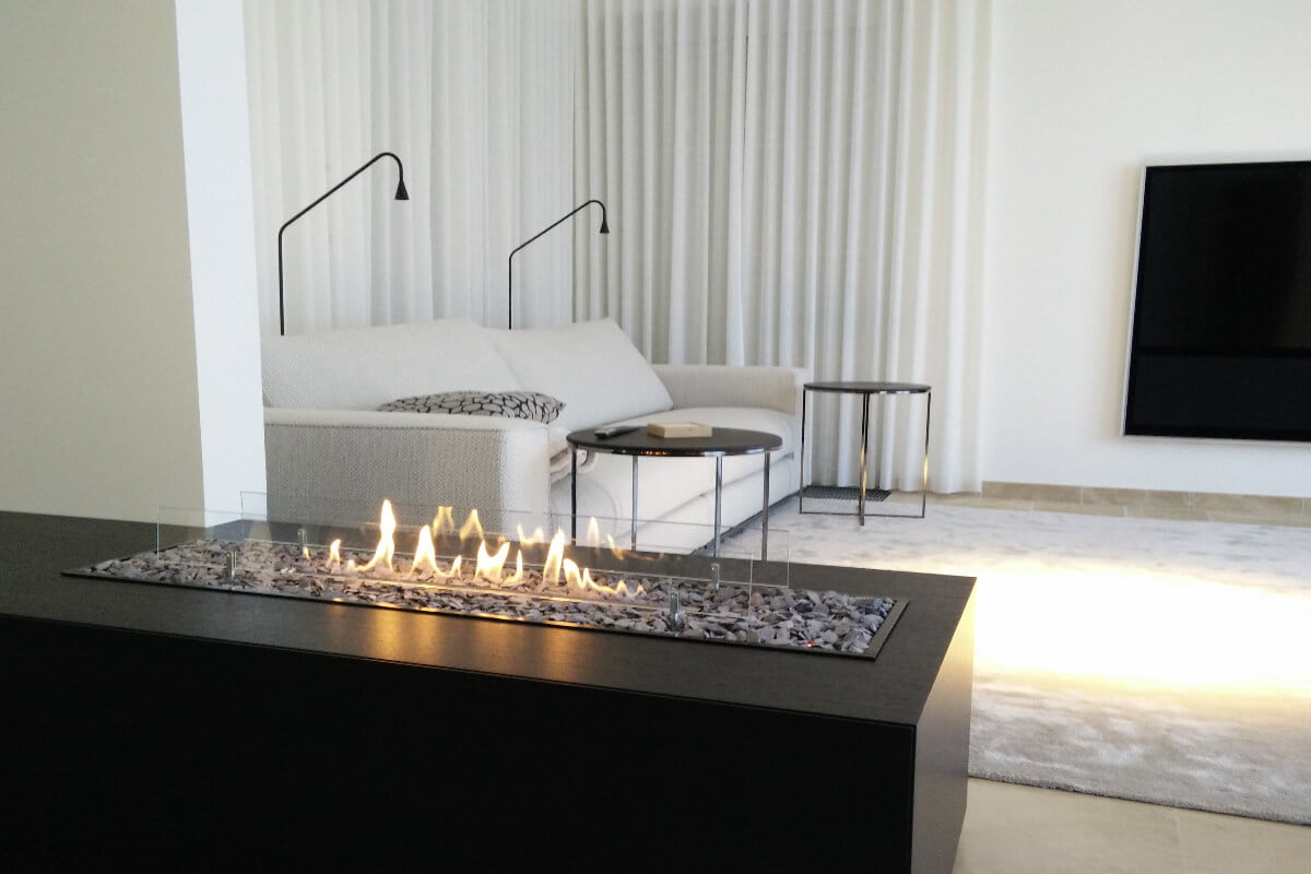 De ultradunne Furo brander nestelt zich naadloos in een decoratie van keien of hout, terwijl de golvende, betoverende vlammen het hart en de ziel van onze haarden vormen. In combinatie met het natuurlijke knisperende geluid worden jouw zintuigen betoverd.